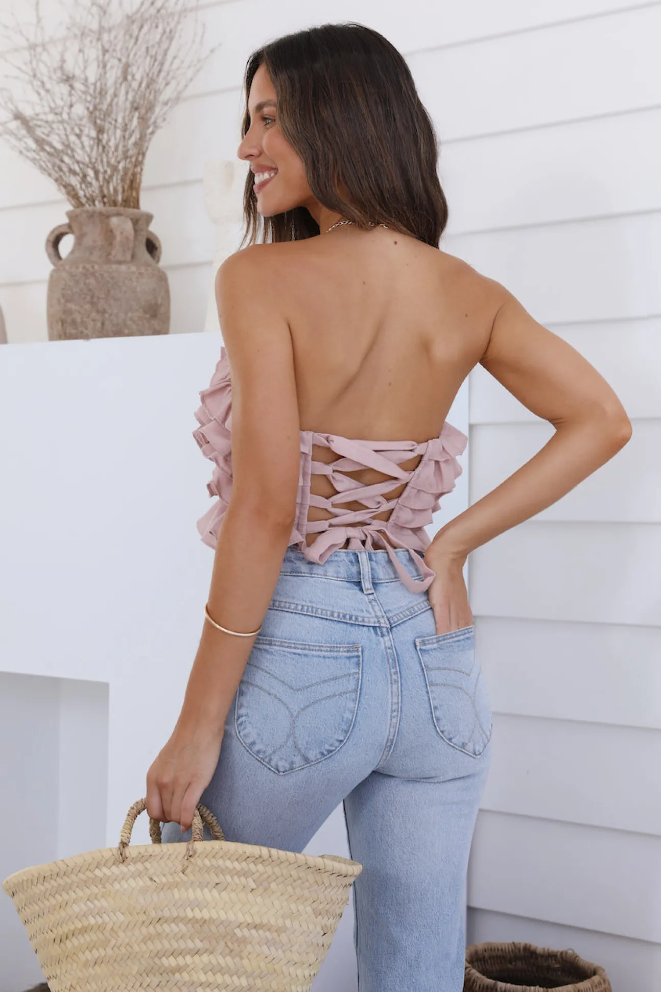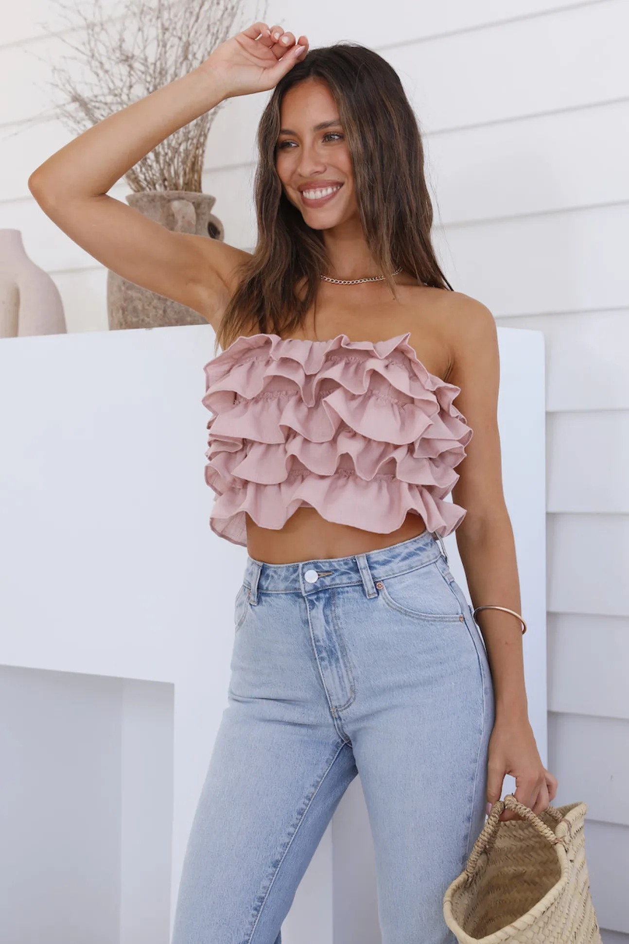 Our Golden Time Crop Top is the perfect staple for your nights out at the beach! Pair yours with denim shorts and heeled mules.