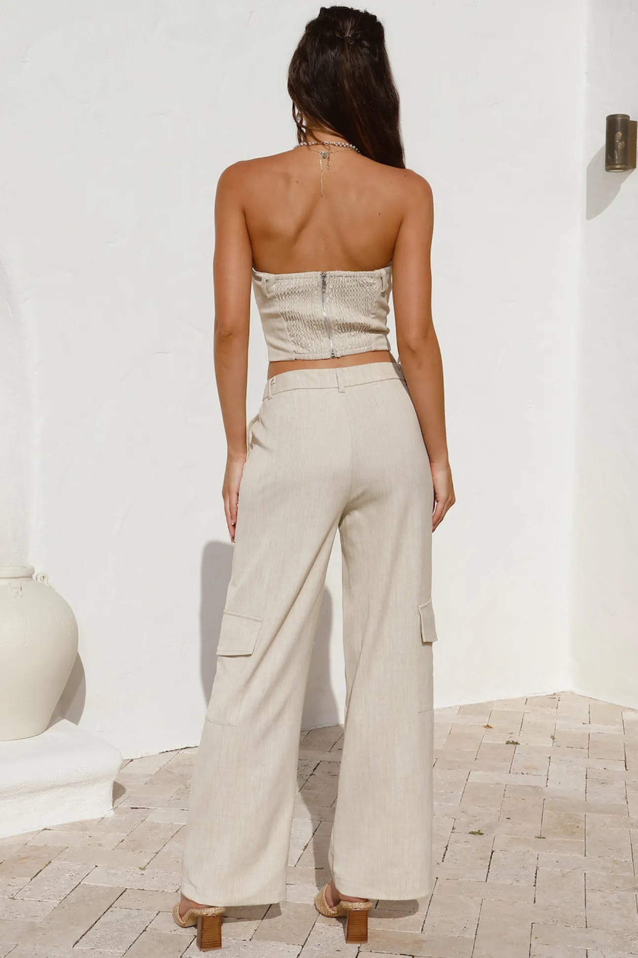 The Have My Word Crop Top in Beige is a great neutral to pack for your next summer vacation. Pair with the matching pants or denim jorts to complete the look.