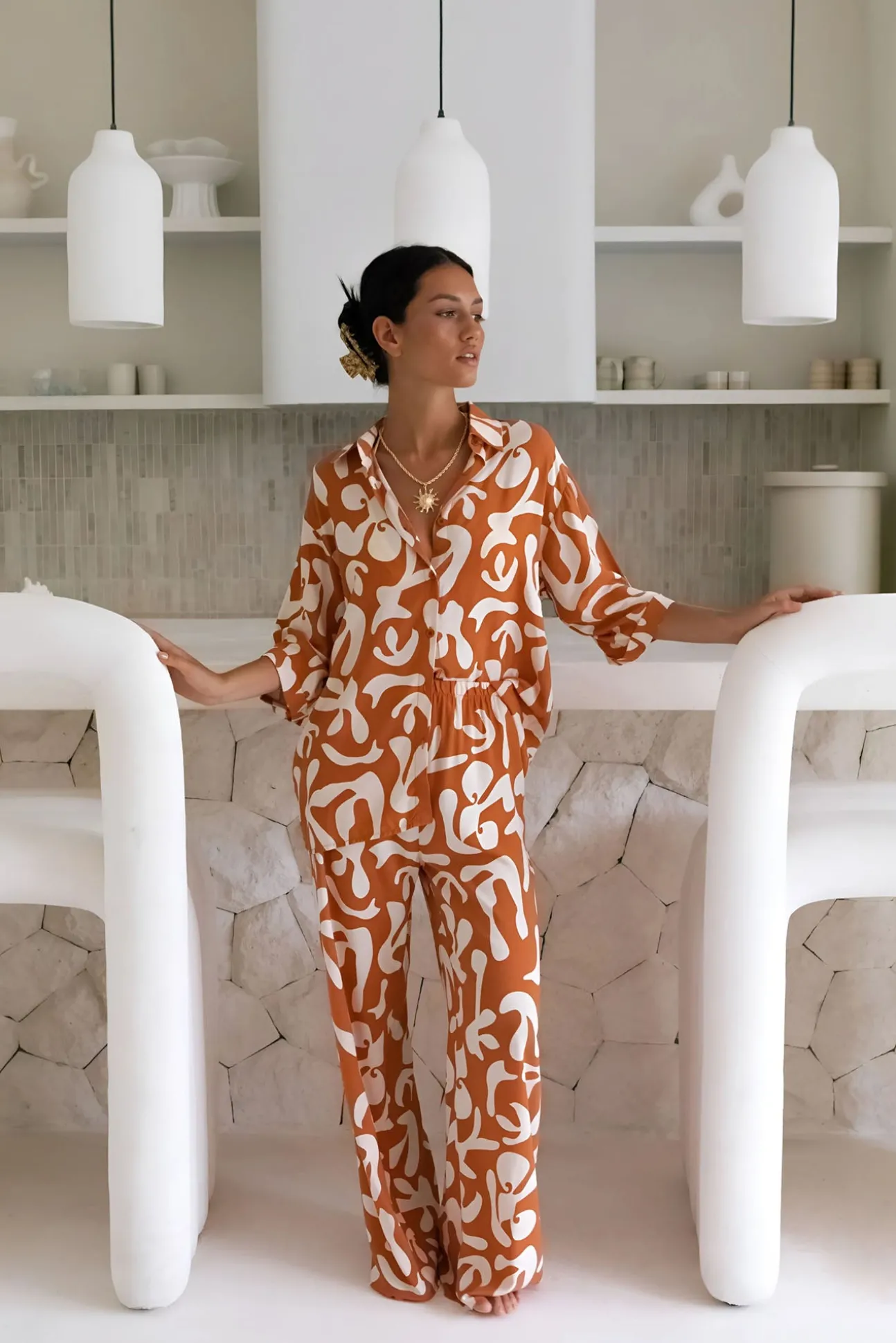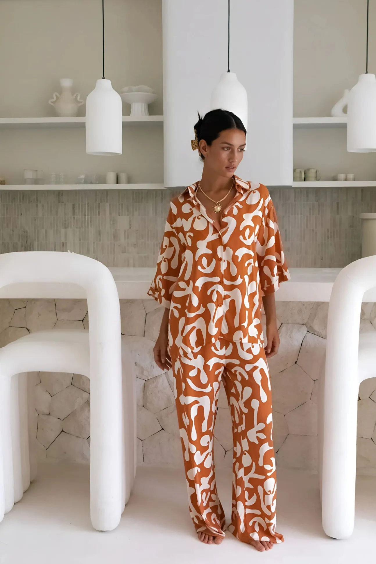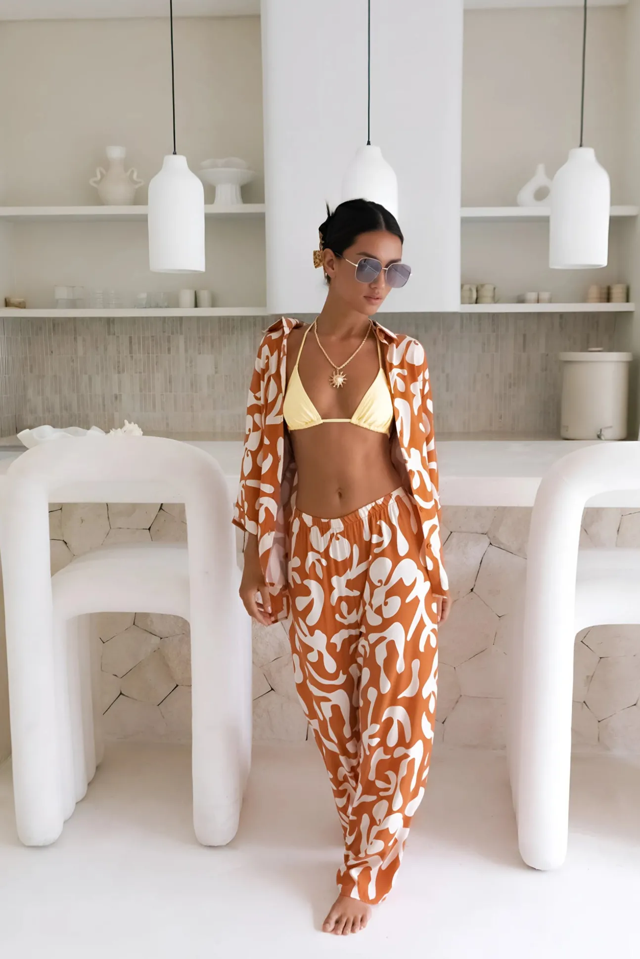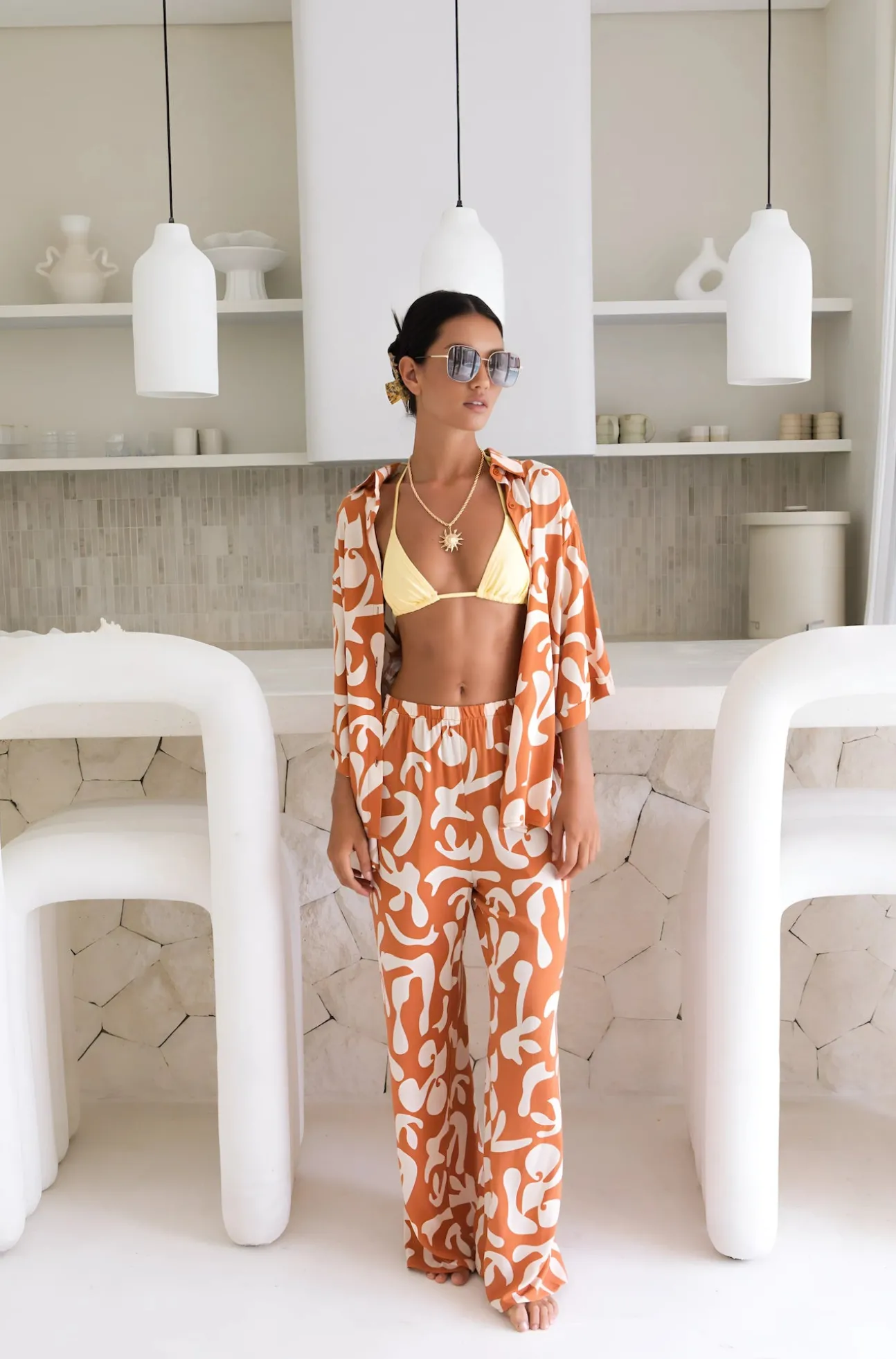 The wind blows whichever way it decides, so do you. Enjoy those free flowing moments in the Sweet Sunbeam Set in Rust. Paid with strappy sandals and gold accessories.