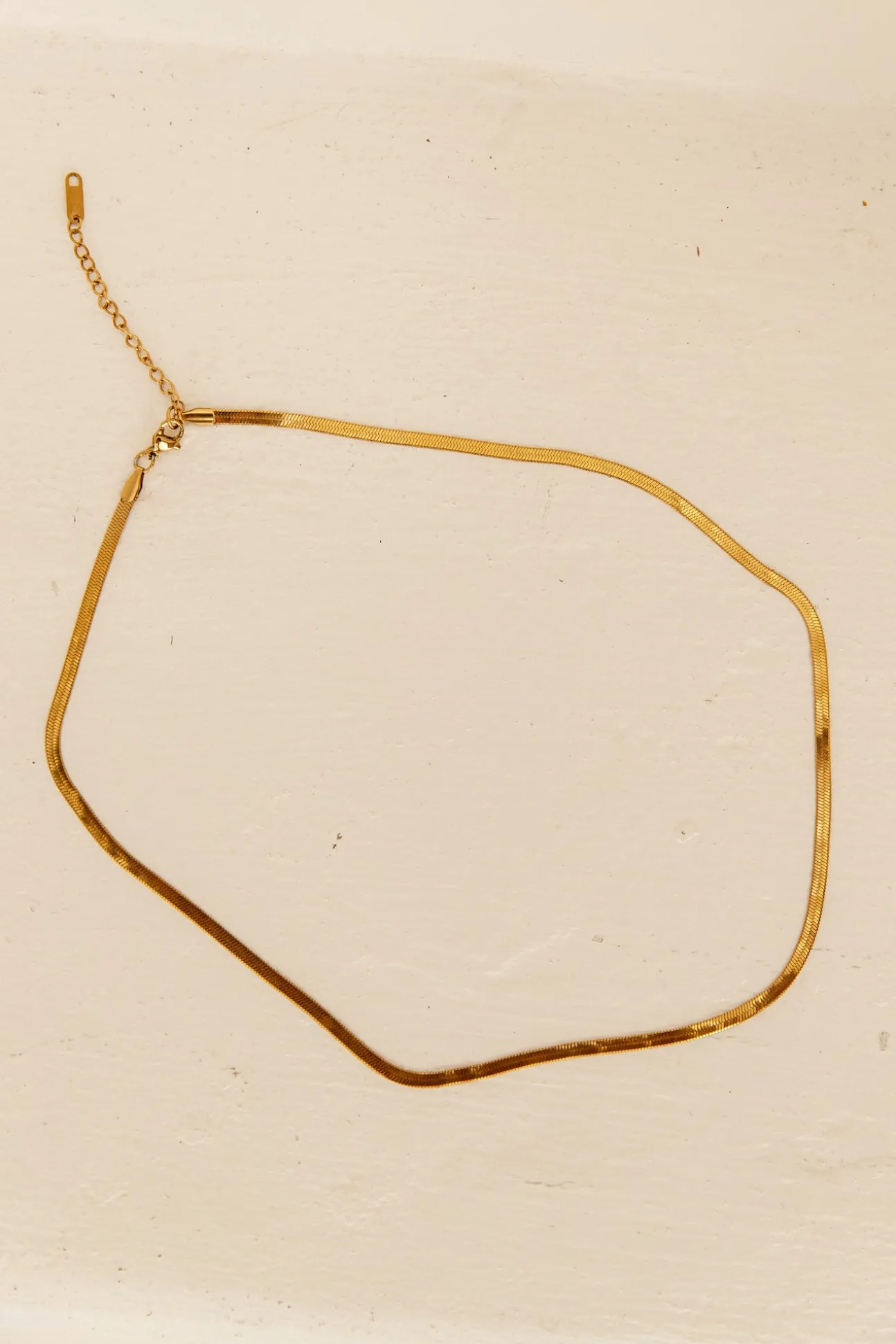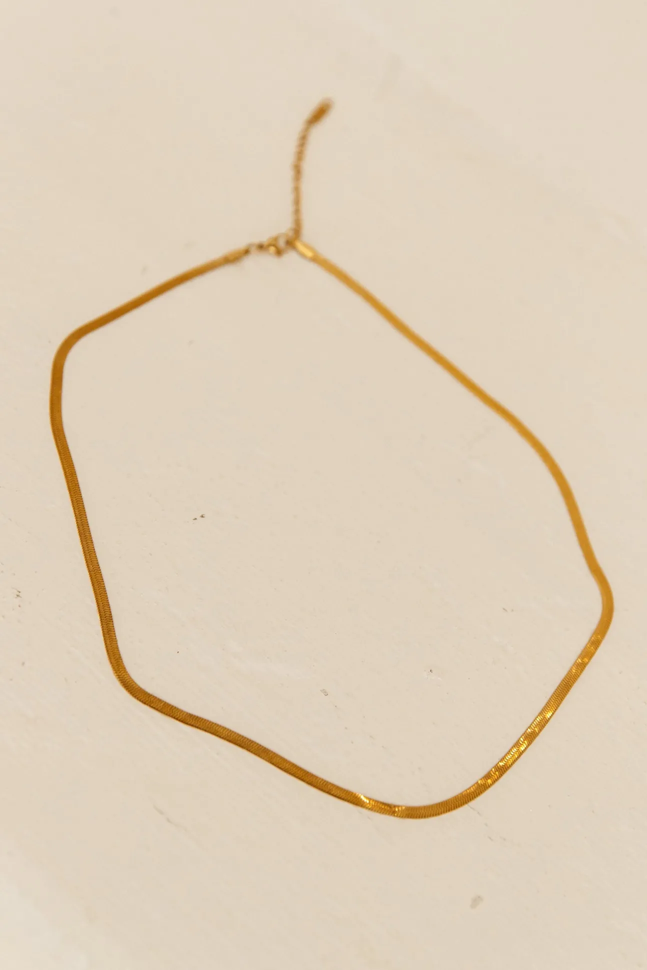 Need a simple accessory to adorn? The 18k Gold Plated Sleek Snake Necklace in Gold is the perfect necklace to have to elevate any outfit or layer into any necklace ensemble.