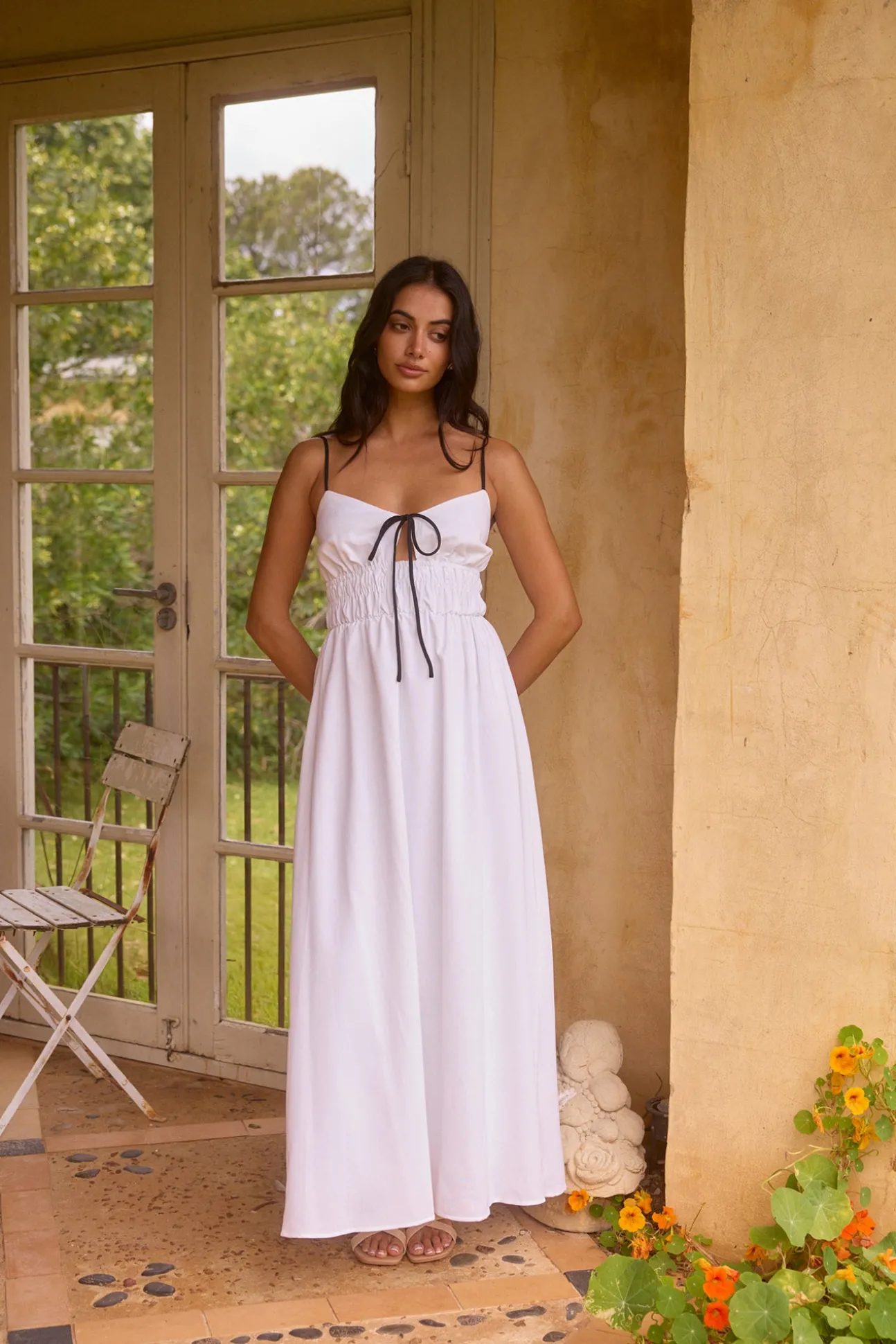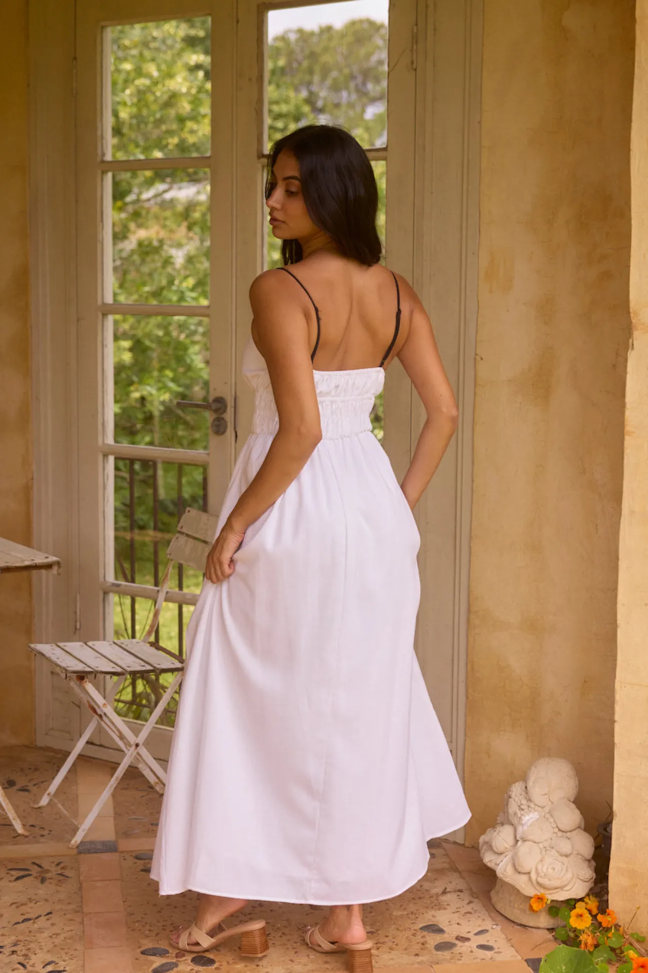 Step out in style in our Fleeting Moments Maxi Dress in White. Featuring a flowy design to make you feel free and dreamy, you’ll need this dress and feeling for your summer getaway. Style with gold adornments.