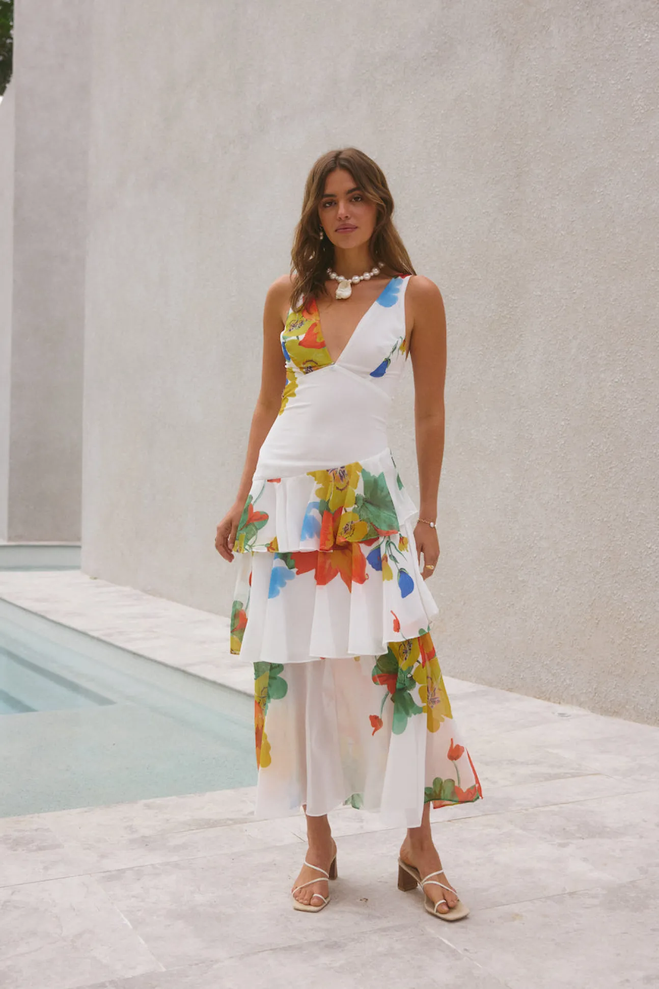 The Floral Dreams Maxi Dress in Multi is a vibrant celebration of summer, featuring a stunning array of floral patterns and a flowing silhouette perfect for garden parties and beachside brunches. Embrace the beauty of nature in this enchanting dress, designed to make you feel like you’re walking through a dreamscape of blooming flowers.