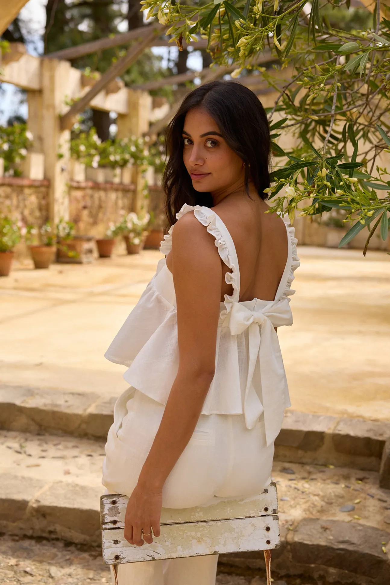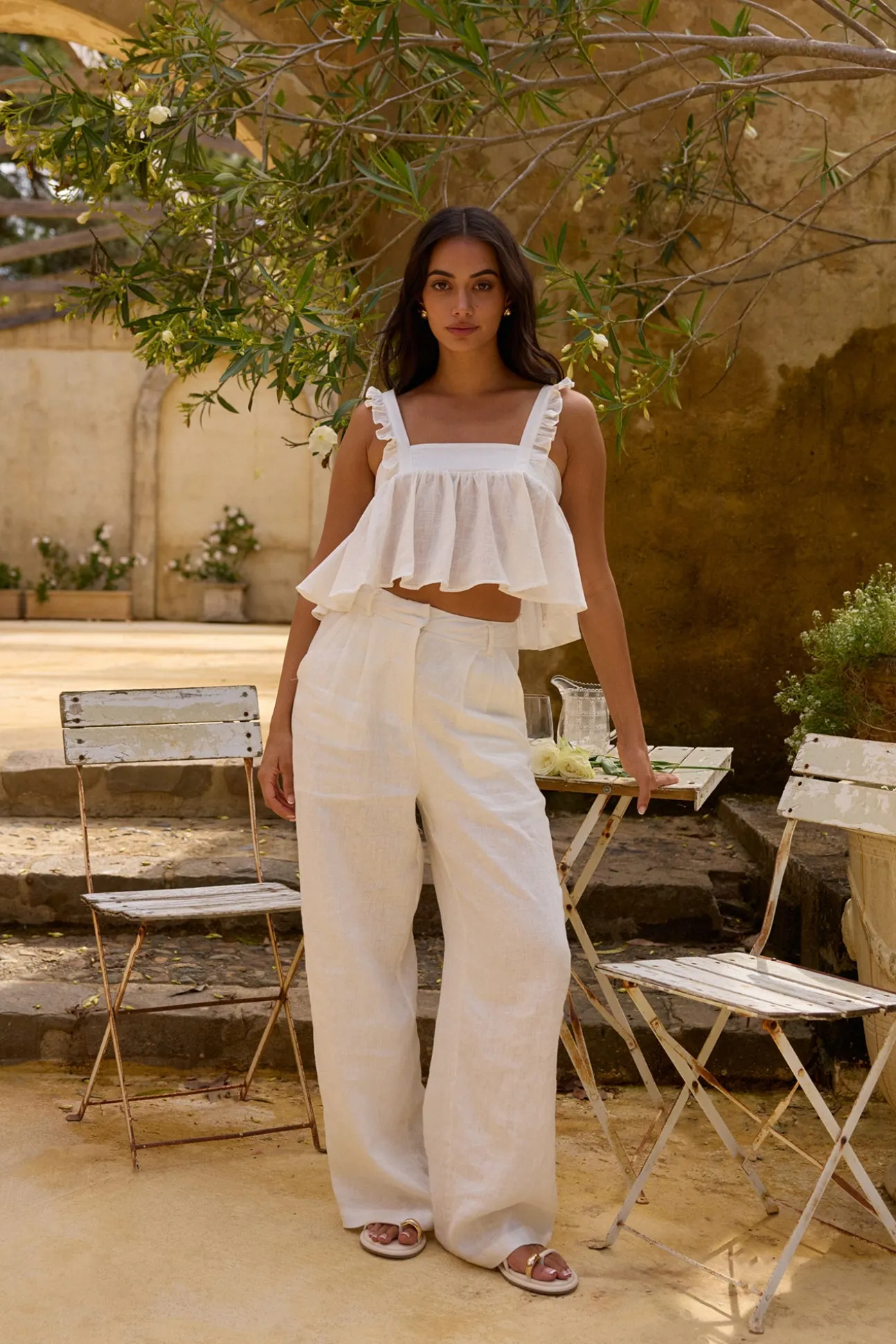 Introducing the Freedom Found Crop Top in White, a chic and versatile addition to your wardrobe, perfect for effortlessly stylish summer looks. Whether exploring Barcelona or lounging on Santorini’s beaches, its design embodies relaxation and freedom, making it ideal for any vacation.