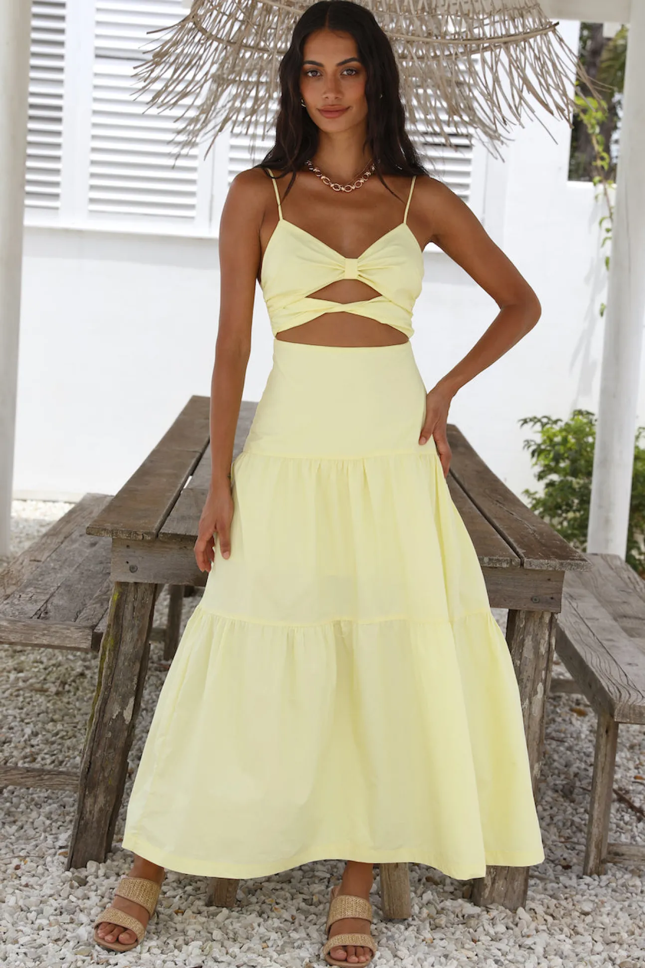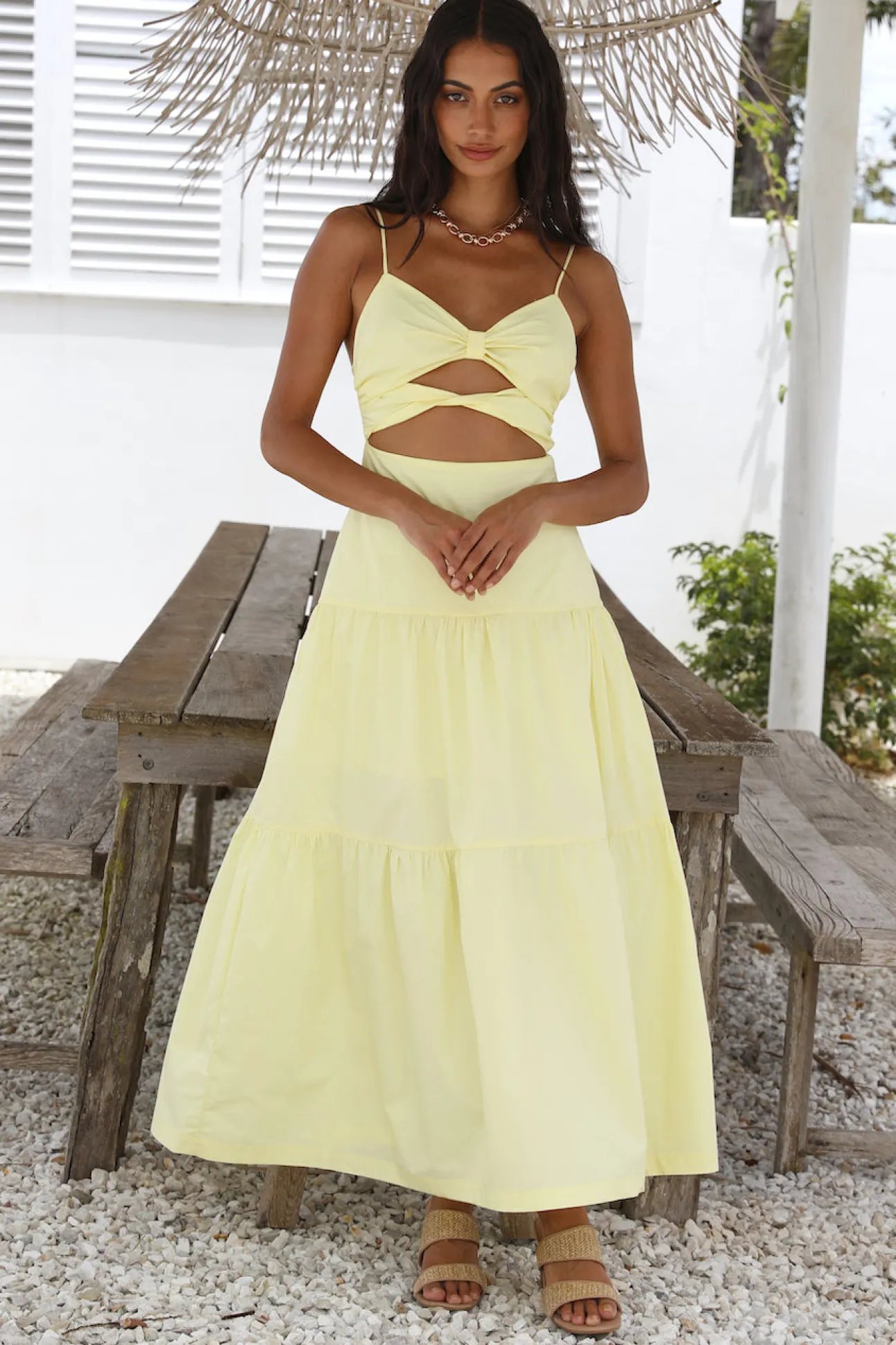 The Make It Natural Maxi Dress is perfect for summer days eating ice cream on the shore. Enjoy the peace of the Amalfi coast and style yours with neutral block heels and gold adornments.