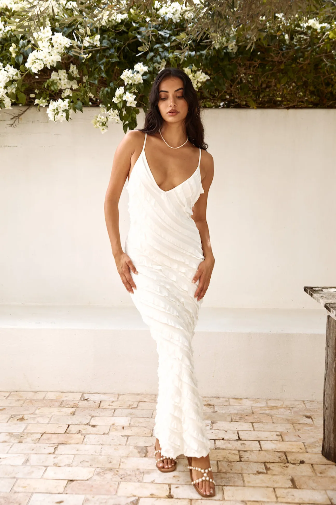 Evoke celestial beauty with our Sound Of Angels Maxi Dress in White. This ethereal piece is perfect for formal events, garden weddings, or any occasion where you want to exude heavenly grace and elegance.