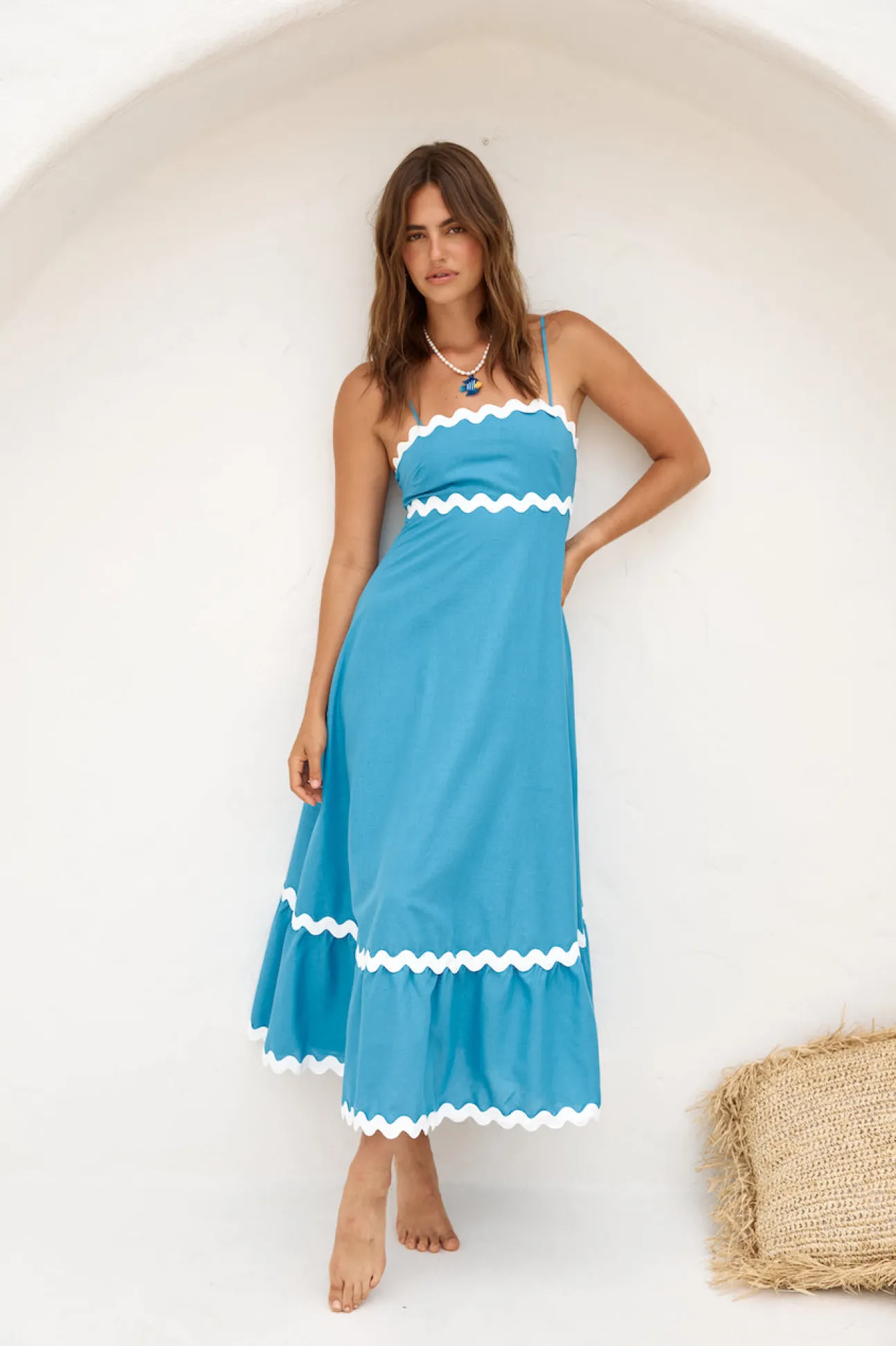 Enjoy your European summer with the Sweet Devotion Maxi Dress in Blue. This flowy dress was designed for life’s unexpected yet magical moments. Style with slip-on sandals and loose waves to complete the look.
